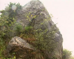 有一天傍晚,王家夫婦正在屋前坪上收稻谷,他倆疼愛(ài)的三歲小孩剛從大門里爬出來(lái),就被孽龍一陣風(fēng)卷了去。忽聽(tīng)云中大喝一聲:“孽畜,不得作惡!”孽龍?zhí)ь^看見(jiàn)觀音菩薩駕云到此,大吃一驚。但他好久未吃東西了,想先吃了再說(shuō),便張開(kāi)大嘴,將小孩往口中送。觀音菩薩拂塵一指,將孽龍定住,又用手一招,把嚇得半死的小孩拖于懷中,怒斥孽龍道:“你這孽障,作惡多端,如不皈依,修成正果,永不出潭。”說(shuō)罷,口中念念有詞,拂塵一掃,將孽龍打入潭中,并移來(lái)一塊兩丈來(lái)高的大石,壓在潭口上,鎮(zhèn)住孽龍。