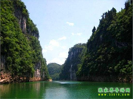 茅巖河漂流段是大庸城西20公里青魚潭往北一段。茅巖河雖灘險流急,但河床坡度小,水位落差不大;險灘較短(一般僅20余米長),而險灘與險灘間的距離卻較長(一般均逾千米),故浪濤適中,漂流有驚無險。茅巖河主要景點有:血門溝、洞子坊、茅巖灘、夾兒溝、溫塘溫泉、麻陽古渡、茅巖河峽、水洞子瀑布等。沿河兩岸青山綠水、風(fēng)光如畫,故又稱“百里畫廊”。
