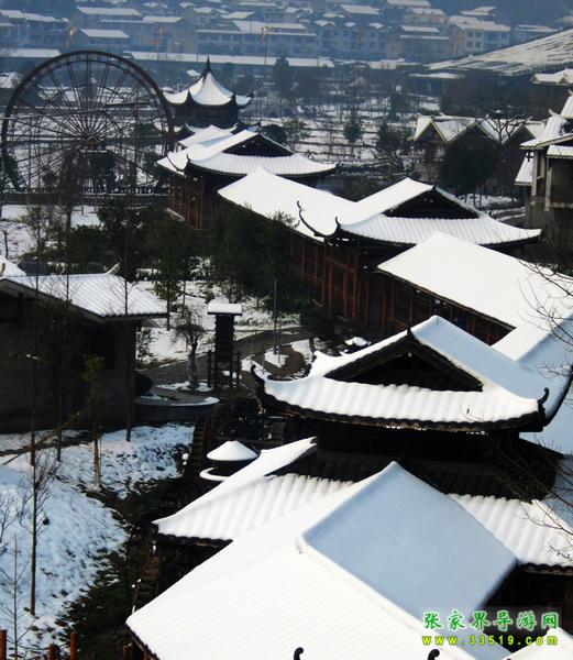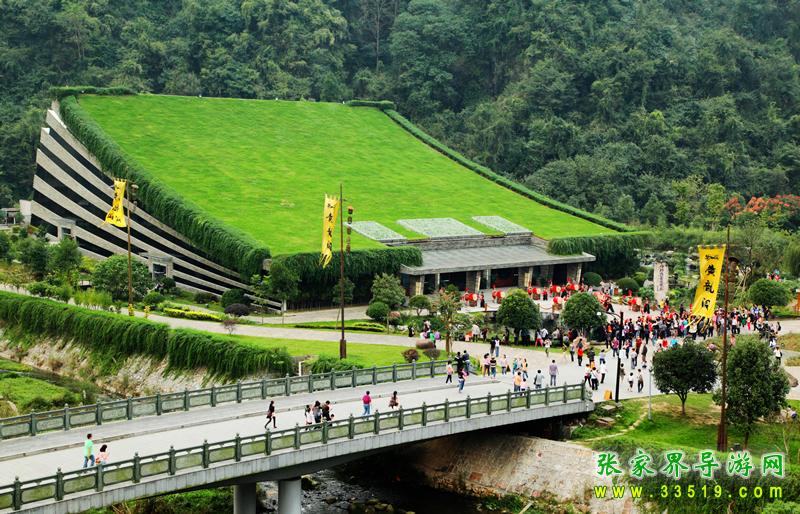 依山傍水而建的土家庭院,總面積有10826.7平方米,形成土家建筑群,分布了商鋪、茶樓、飯店、辦公區(qū)域。哈利路亞音樂廳是廣場中最大的建筑,它采用了全國獨(dú)一無二的斜屋坡面綠化,具有演藝和展示雙重功能,外墻裝飾有流線性的藝術(shù)美感,屋頂綠化與大自然相融,點綴著多色草木,色彩繽紛,形成了“空中花園”的自然觀感。