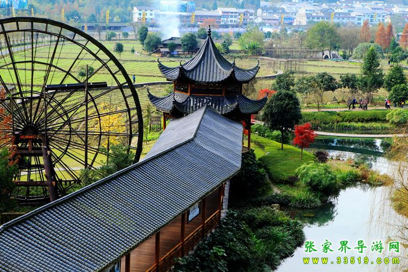 生態(tài)廣場共種植了近1600余株喬灌木,草皮、綠化工程共占地近3萬平方米,是廣場總面積的61%。香樟、桂花、紫薇等四季常青的樹木爭芳斗艷,是人們休閑時的綠色伴侶。田園風(fēng)光與綠化景觀交相輝映,隔游道相望,農(nóng)田近2萬平方米,集中在廣場東南部,水稻、玉米及各類果蔬與農(nóng)舍、家禽、和平鴿的融合,串連著鄉(xiāng)村小路,讓鄉(xiāng)野韻味達(dá)到了極致。水車、石磨,還有蒼勁的風(fēng)水樹仿佛將人們帶入了一個古老的世界,石拱橋、鐵索橋與斗拱建筑渾然一體,既有江南水鄉(xiāng)的柔美,又不失土家特色。