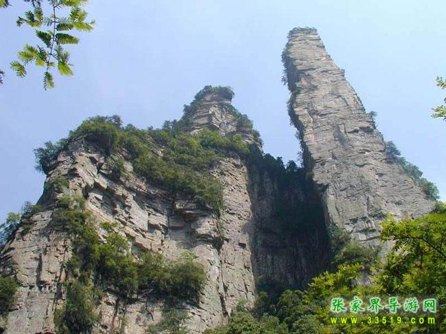 與金鞭巖隔溪對峙,矗立在斜坡上,高200余米。上下粗細(xì)一般,峰體渾圓,色赤,呈70度角向金鞭溪傾斜,形似醉酒羅漢,欲倒不倒,似醉非醉,詼諧幽默。清嘉慶學(xué)士彭之臣在峰壁書寫一“忠”字。清道光四年(1824),貢生彭之運作《壁忠記》譯文以彰其勝。風(fēng)雨蒼桑,“忠”字因山石崩塌遭毀,《記》存于當(dāng)?shù)刂緯小?/p>