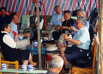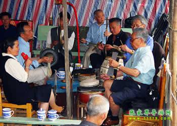 圍鼓(含嗩吶)。又稱打鎦子、打排鼓,是民間紅白會中不可缺少的樂器。一般7人演奏,樂器有一鼓、一大鑼、一公鑼、兩副鈸、兩嗩吶。其詞曲紅白會通用,以鼓和嗩吶上系紅、白布為分別標(biāo)記(結(jié)婚不打四字鈸曲)。史傳的圍鼓詞有《撩子》、《火鋪》等,《撩子》分《一二三》、《閃翅》、《堆羅漢》、《反落花》等十章,《火鋪》也分《三槍》、《四進(jìn)門》、《八哥洗澡》、《蓮魚吐絲》等十章,嗩吶詞有《八十正宮》調(diào)等。在農(nóng)村,圍鼓是最普及的樂器,每逢紅白喜事都有圍鼓和嗩吶表演。