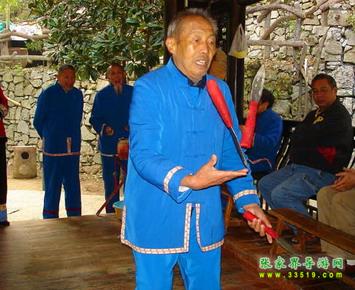 三棒鼓,唐代稱三仗鼓,明沈行符《顧曲雜言》 曰:“吳下何來有打三棒鼓乞錢者,余幼時有見之也, 起于唐咸通中(公元865年)”約于明代傳入本境, 并逐漸成為群眾增聞樂見的民間藝術形式。每年春節(jié) ,藝人們結(jié)伴走村竄寨拜年,表演對象不分貧富,戶 戶必到。如遇貧寒之家,表演者將別家贈送禮品相送 ,意在人人過節(jié)歡喜。充分體現(xiàn)出土家族人熱情好客 ,心地善良的民族性格,對加強民族團結(jié)有一定作用 。 三棒鼓通常由三至五人組成,一人擊鼓唱詞,一 人鑼鈸配樂,一人耍花棒。花棒三根,長一尺,舞者 左右手各持一根,將另一根拋在空中,左右開弓,擊 打空中花棒使之不落地。也有以刀代棒,以五刀代三 棒的技藝。技藝高強者,突然把刀拋得極高,來一個 眼花繚亂,不禁稱絕。打三棒鼓,通常有“鬧春耕” 、“收割打場”、“慶豐收”、“拜年節(jié)”四套,分 “鯉魚跳龍門”、“玉女穿梭”、“板巖漂灘”等項 目。打三棒鼓技巧性強,表演時需高度集中,用力適 當,貫通一氣,并與演唱者默默配合。
