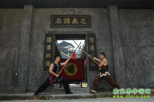 忠義鏢局,它始建于清乾隆四十二年(1777),位于洪江龍船沖,這里會(huì)館、錢莊、豪宅林立,堪稱洪江的曼哈頓。與我們?cè)?a class="insidelink" href="http://www.chenggufj.com/hongjiang/" target="_blank" title="洪江古商城">古商城看到的窨子屋不同,這是一座典型的北方四合院,前庭后院,布局嚴(yán)謹(jǐn),軸線明確,左右對(duì)稱,主次分明。前院是鏢師練功習(xí)武之地,墻壁上書有“忠”、“孝”、“禮”、“義”四字和“十八羅漢練功圖”;后院為鏢師起居和洽談生意之所,內(nèi)供奉關(guān)武大帝。忠義鏢局主要為豪商巨賈押運(yùn)銀票、貨物,看家護(hù)院,坐夜守店,也開館收徒,傳授武藝。忠義鏢局的掌門人劉大鵬,湖南長沙人,幼時(shí)即入嵩山少林寺習(xí)武,不僅精通十八般武藝,而且頭腦精明,他把鏢局開在這洪江最繁華的金融一條街,足見他的經(jīng)商意識(shí)和人面廣了?,F(xiàn)在忠義鏢局現(xiàn)場(chǎng)表演古代押鏢、行鏢全過程,是人們了解中國古代鏢行歷史文化的活性博物館。有興趣的朋友可以去洪江古商城親自感受一下當(dāng)時(shí)押鏢的情景吧。