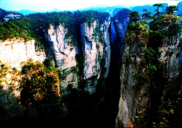 下 午: 乘環(huán)保車40分鐘抵達有“峰林之王”之稱的天子山自然風(fēng)景區(qū)(游覽時間約1小時):“誰人識得天子面,歸來不看天下山”,可見天子山風(fēng)光旖旎,景色秀美,景點眾多,游覽集自然于人文于一體的賀龍公園、御筆峰、仙女獻花、西海石林、石船出海等,可登上天子山最高點天子閣,遠眺天子山全景。步行2小時下山到達十里畫廊風(fēng)景區(qū),可游覽到:張家界十大絕景之一的采藥老人、三姐妹峰、黃昏戀、金雞報曉、夫妻抱子、天狗望月等景點。